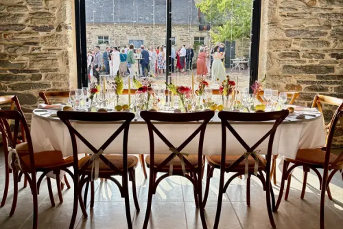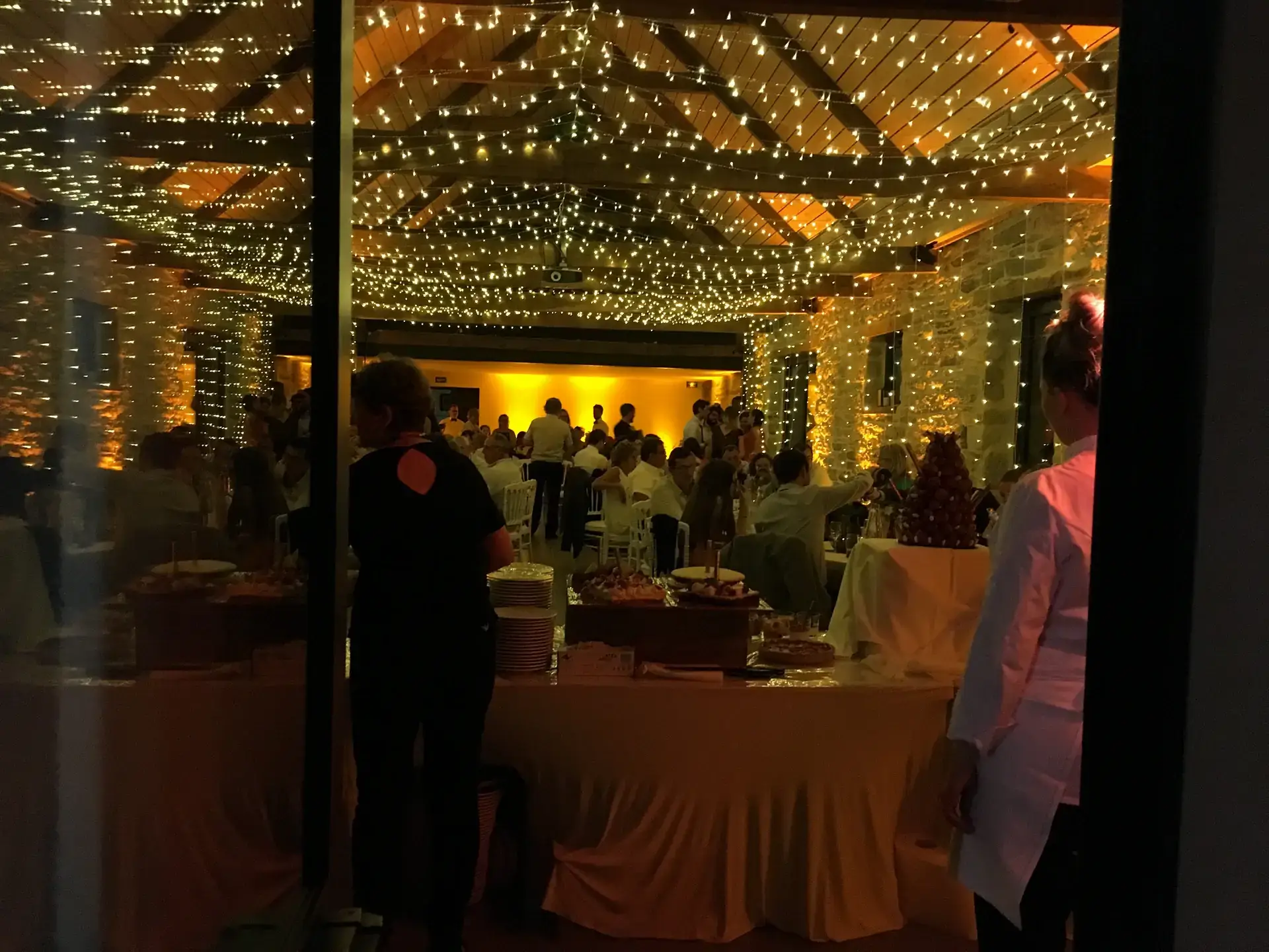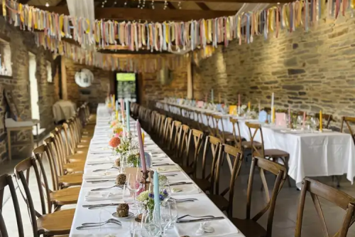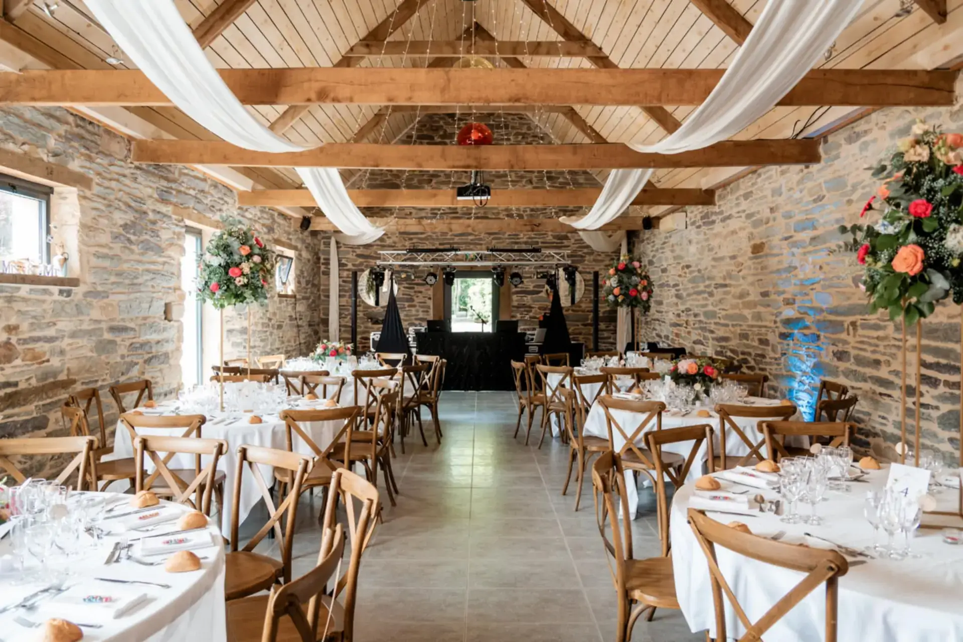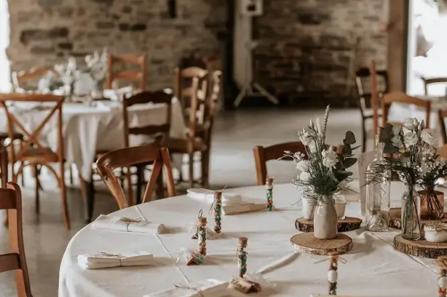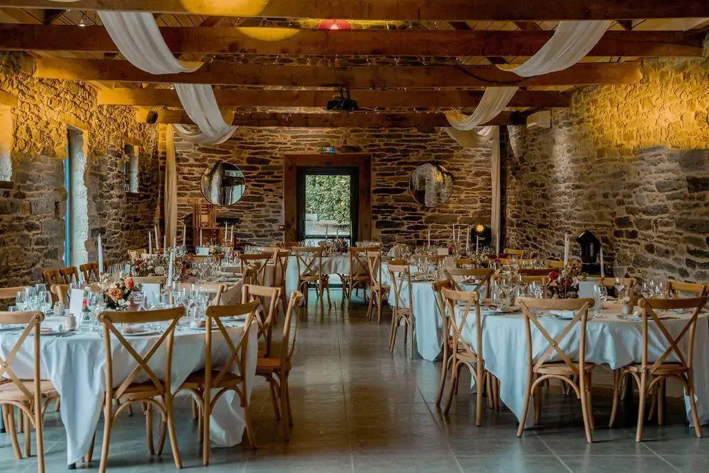 - Cette salle allie authenticité et convivialité grâce à ses poutres apparentes, sa hauteur sous plafond et ses murs de pierres ardoisées
